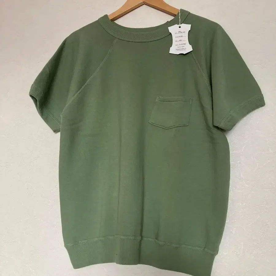 웨어하우스 세코핸 포켓 부착 반팔 맨투맨 LOT 4085 컬러 PALE GREEN 사이즈 L 생산국 일본 미사용 새상품 ※ 마지막 사진은 빛을 받아 얇게 보입니다. 색감은 처음 사진에 가깝습니다. [ 상품 설명 ] 행행기로 짜여진 얇은 소재의 맨투맨 원단에 포켓이 부착된 반팔 맨투맨입니다. 왼쪽 가슴에 작은 포켓이 달린 심플한 디자인으로, 행행기 특유의 포근한 촉감을 느낄 수 있습니다. 단품으로 입는 것은 물론, 맨투맨 특유의 레이어드 스타일도 즐길 수 있는 아이템입니다. 컬러 - 펄 그린 얼룩, 찢김, 냄새 등 - 없음 가슴 너비 - 56cm 기장 - 59cm 컬러 - 그린 계열