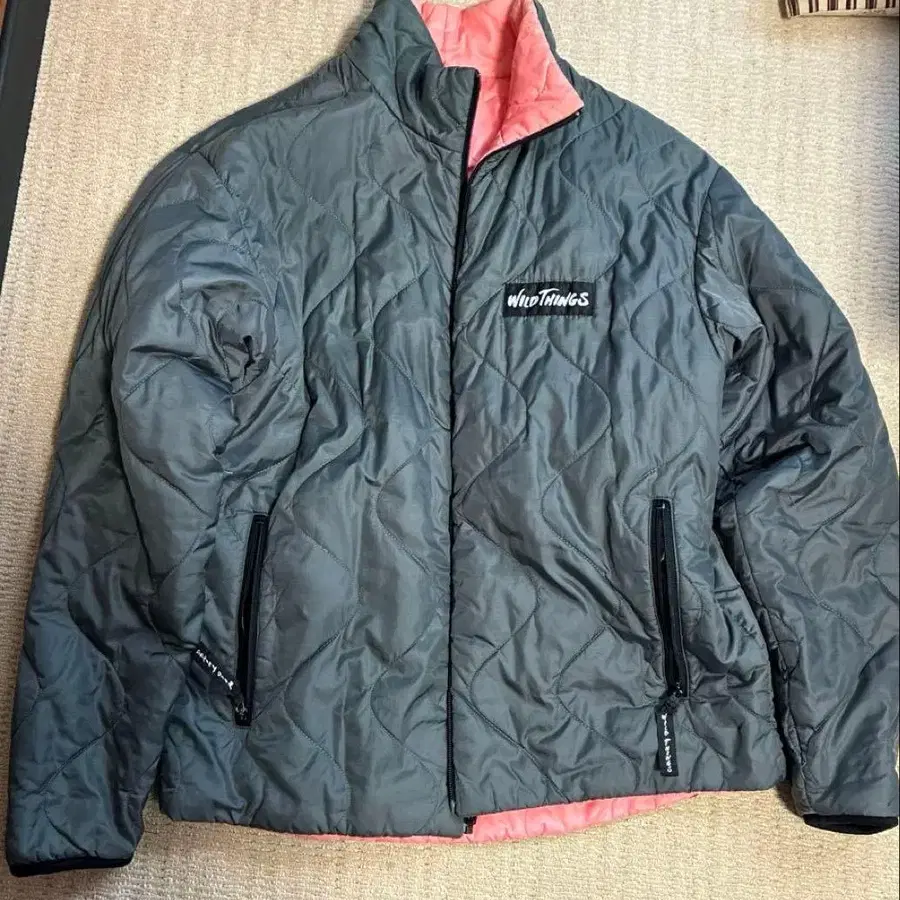 그레이와 핑크 색상의 퀼팅 디자인 나일론 자켓입니다. 초기 컬러로 좋은 배색입니다.