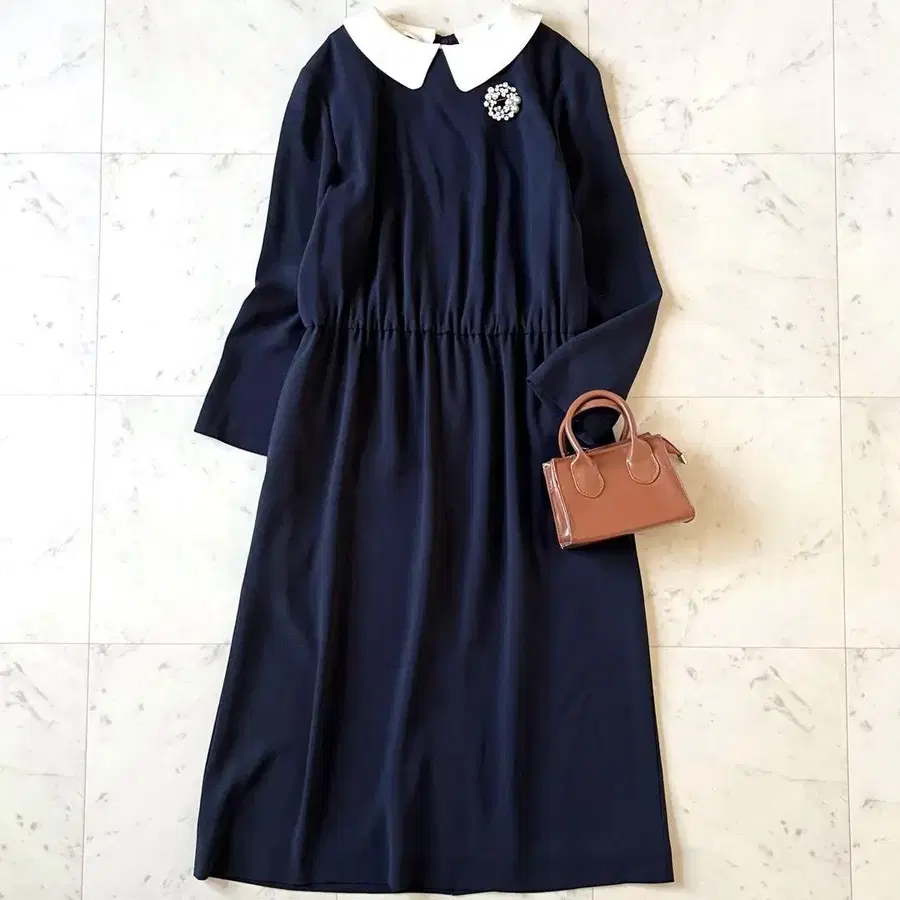 둥근 카라 디자인이 클래시컬한 인상을 주는 롱 원피스입니다.
