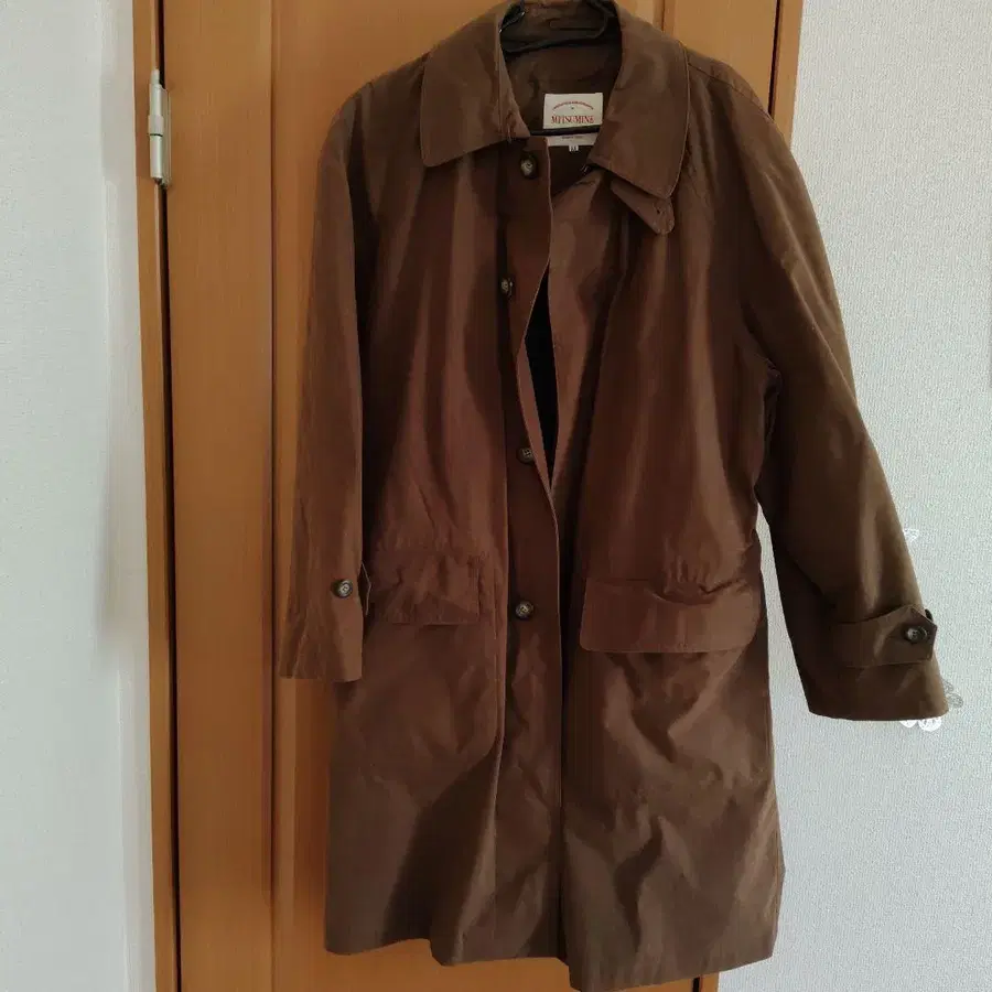 MITSUMINE의 코트. 2회 정도 착용 후 자택 보관 중입니다. 브라운 색상의 트렌치코트로, 코튼과 레진 혼합 소재입니다. - 색상: 브라운 - 소재: 코튼 85%, 레진 15% - 안감: 린넨 100% - 스타일: 트렌치코트 방문해 주셔서 감사합니다.
