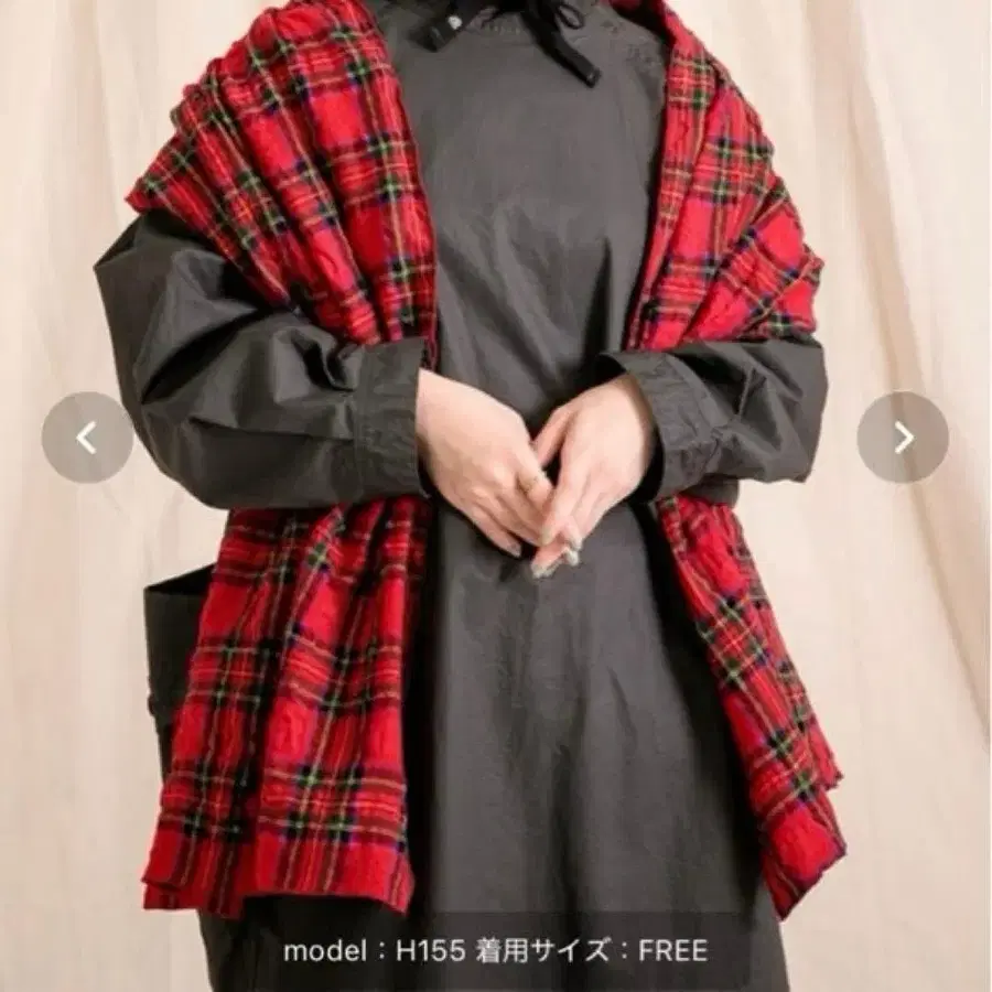 포근포근한 주름감이 귀여운 체크 무늬의 대형 스톨.