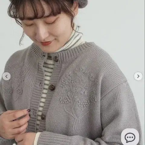 사만사 모스모스 그레이 꽃무늬 자수 니트 가디건