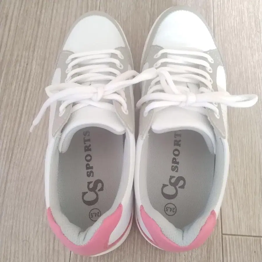 화이트와 그레이의 콤비네이션에 핑크 악센트가 특징인 CS SPORTS 스니커즈. - 브랜드: CS SPORTS - 색상: 화이트/그레이/핑크 - 스타일: 스니커즈 - 사이즈: 24.5cm 방문해 주셔서 감사합니다.