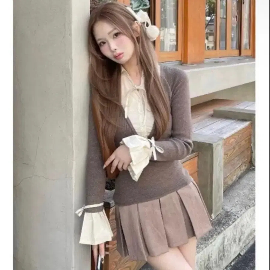 evelyn 원피스 리본 블라우스 플리츠 OP