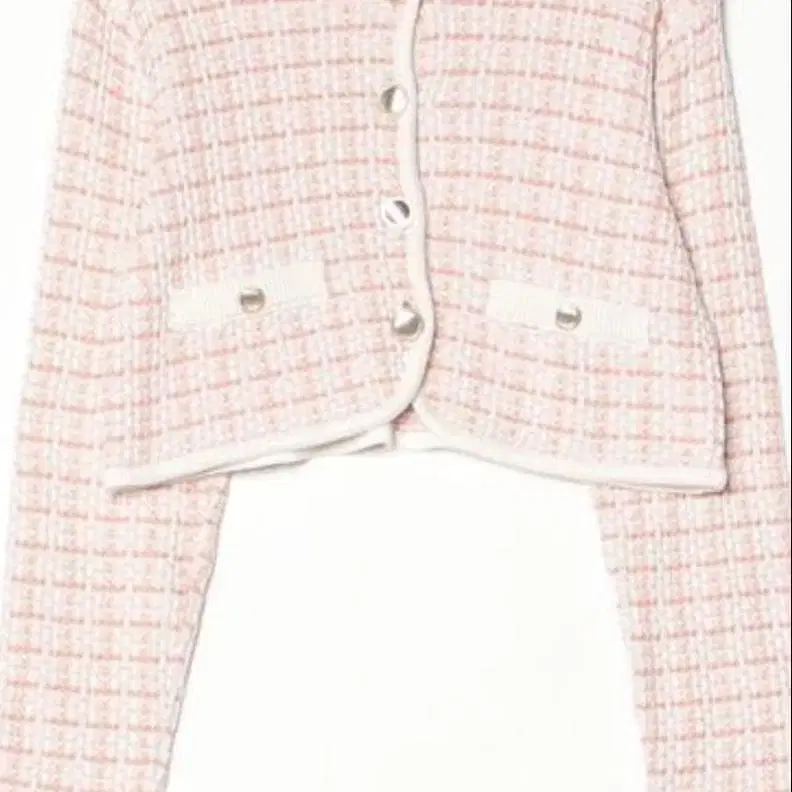 핑크 계열의 노카라 자켓입니다. 아크릴과 울 혼합 소재로, 버튼과 포켓이 특징입니다.