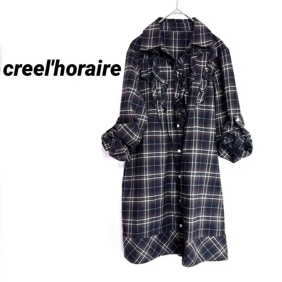 2167M 크릴 오 레일 셔츠 원피스 체크 무늬 프릴 튜닉