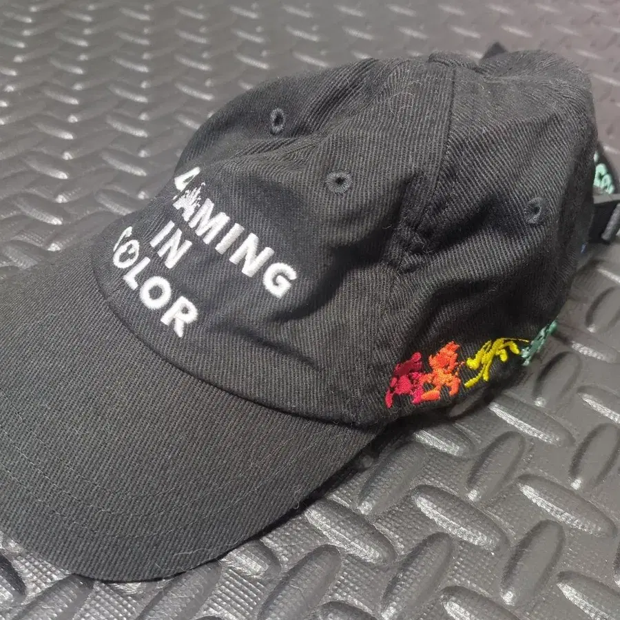 - 디자인: 블랙 컬러 캡에 [ DREAMING IN COLOR ] 자수