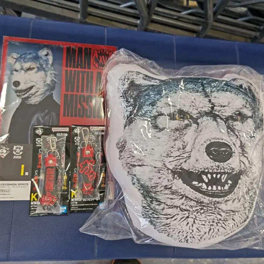 MAN WITH A MISSION 제일복권 상품입니다. 쿠션, 스트랩, 클리어 파일 총 4점입니다. 마그넷을 노리고 구매했기 때문에 판매합니다.
