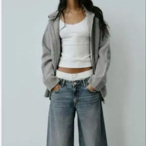 미사용 새상품! ZARA 그레이 와이드 레그 데님 팬츠