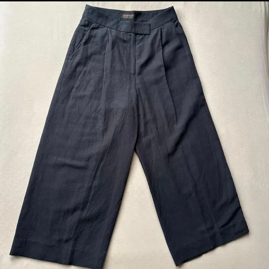 린넨 소재의 다크 그레이 와이드 팬츠, 플리츠 디자인으로 스타일리시합니다. 작년에 구매했지만 사이즈가 맞지 않아 판매합니다. 사이즈 34 가벼운 원단입니다. 착용은 1회뿐입니다. 색상은 블랙이지만 네이비로도 보이고 블랙으로도 보이는 듯한 색상입니다. 인심 55 밑단 폭 28 허리 35 밑위 33 - 브랜드: TOMORROWLAND - 스타일: 와이드 팬츠 - 소재: 린넨 - 디자인: 플리츠 방문해 주셔서 감사합니다.
