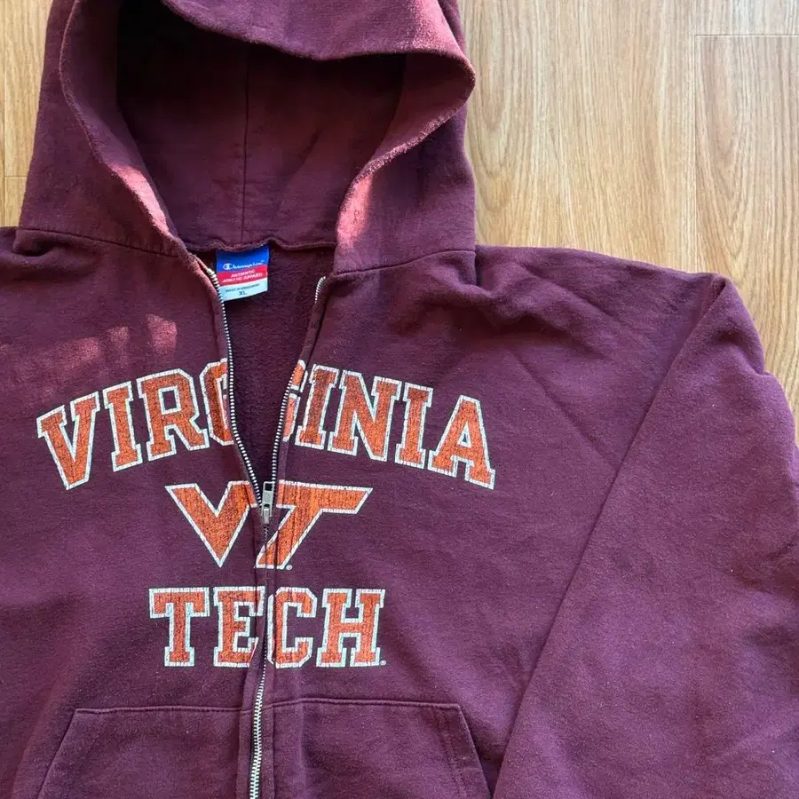 빈티지 구제 의류 지퍼 후드티 챔피온 버지니아 공과대학교
