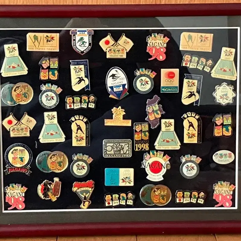 1998년 나가노 올림픽 핀 배지. 액자에 넣어 판매합니다. 나가노 대회로부터 28년 - 감동이 되살아납니다!! 개인 보관품이므로 컴플레인, 노 리턴으로 부탁드립니다. 방문해 주셔서 감사합니다.