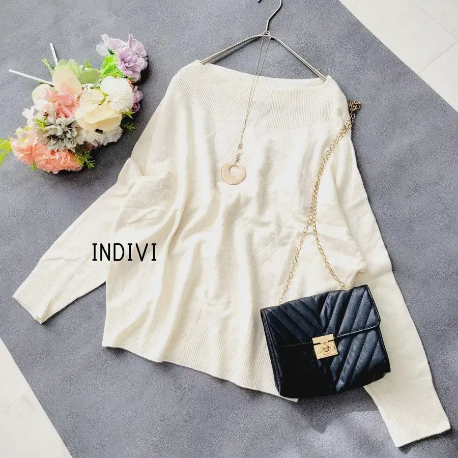 인디비*화이트/아이보리 울 캐시미어 혼방 니트 풀오버