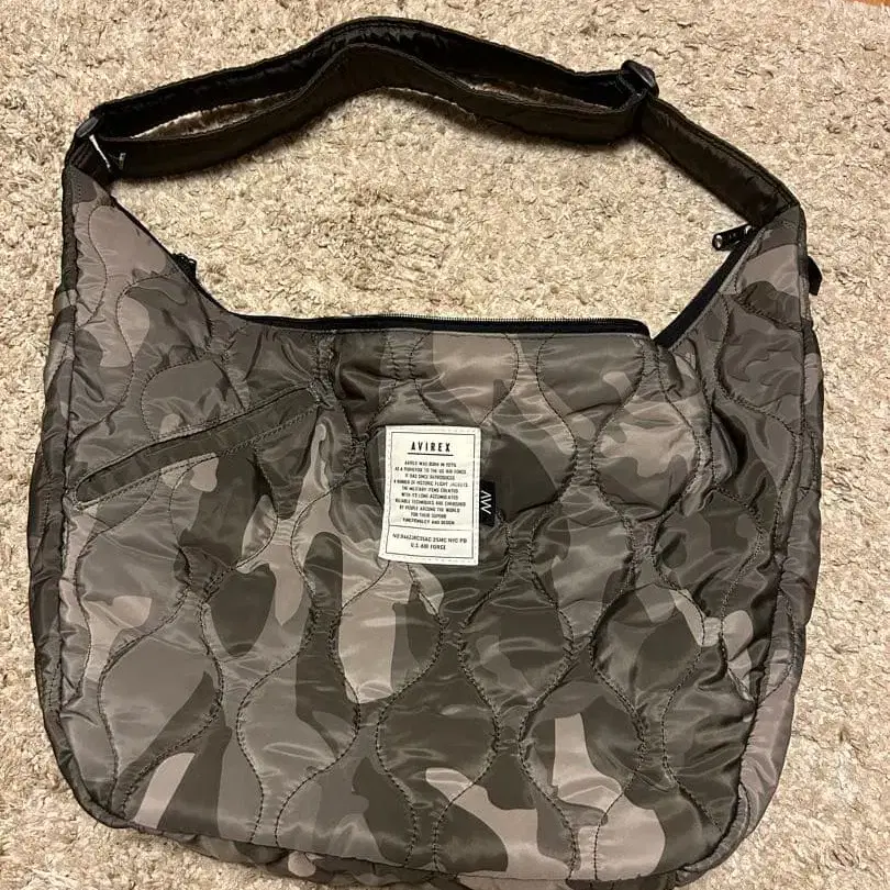 방문해 주셔서 감사합니다. 아비렉스의 숄더백입니다. 퀼팅, 카모 패턴으로 멋스럽습니다. 거의 사용하지 않아 깨끗한 상태입니다. 사이즈 가로(위)/54CM 가로(밑)/26CM 높이/31.5CM 잘 부탁드립니다.