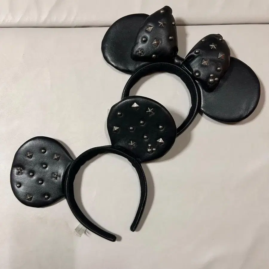 스터드 장식 블랙 미키, 미니 귀 머리띠 페어