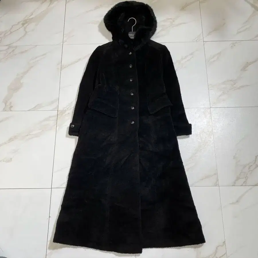 샤기 후디드 코트 롱 코트