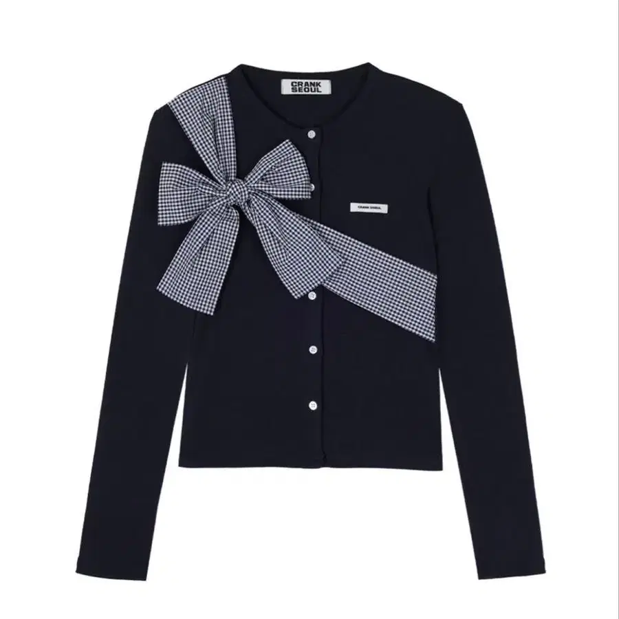 [ 새상품 ] CRANK 리본 니트 가디건 블랙