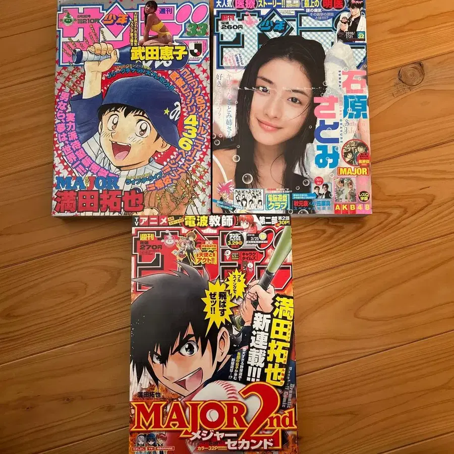 미츠다 타쿠야의 인기 코믹스 [MAJOR] 시리즈를 포함한 주간 소년 선데이 백넘버입니다. 메이저 연재 시작호, 최종화, 메이저 세컨드 연재 시작호의 선데이 세트입니다. 노컴플레인으로 구매하실 수 있는 분만 잘 부탁드립니다. - 타이틀: 주간 소년 선데이 - 호수: 33, 32, 15 - 발행 연도: 1999, 2010 - 저자: 미츠다 타쿠야 - 시리즈명: MAJOR - 특집: AKB48 - 상태: 중고 방문해 주셔서 감사합니다.