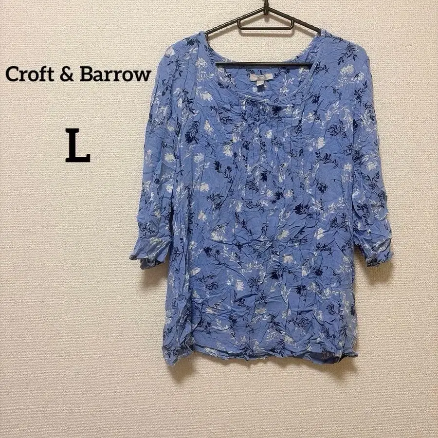 자동 번역되었어요. 원문보기파란 꽃무늬 오부 소매 블라우스, L 사이즈.