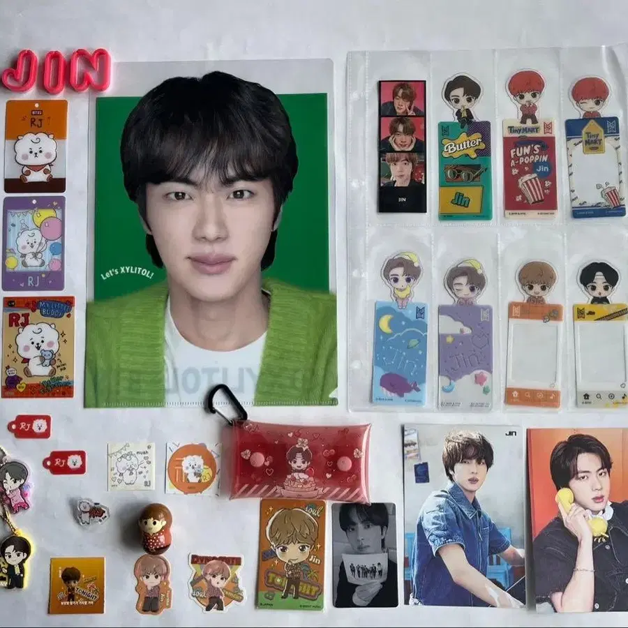JIN의 컬러풀한 굿즈 세트, 키링과 스티커 포함. - 캐릭터: JIN - 아이템 타입: 굿즈 세트 - 테마: K-POP - 부속품: 키링, 스티커, 포토 카드 방문해 주셔서 감사합니다.