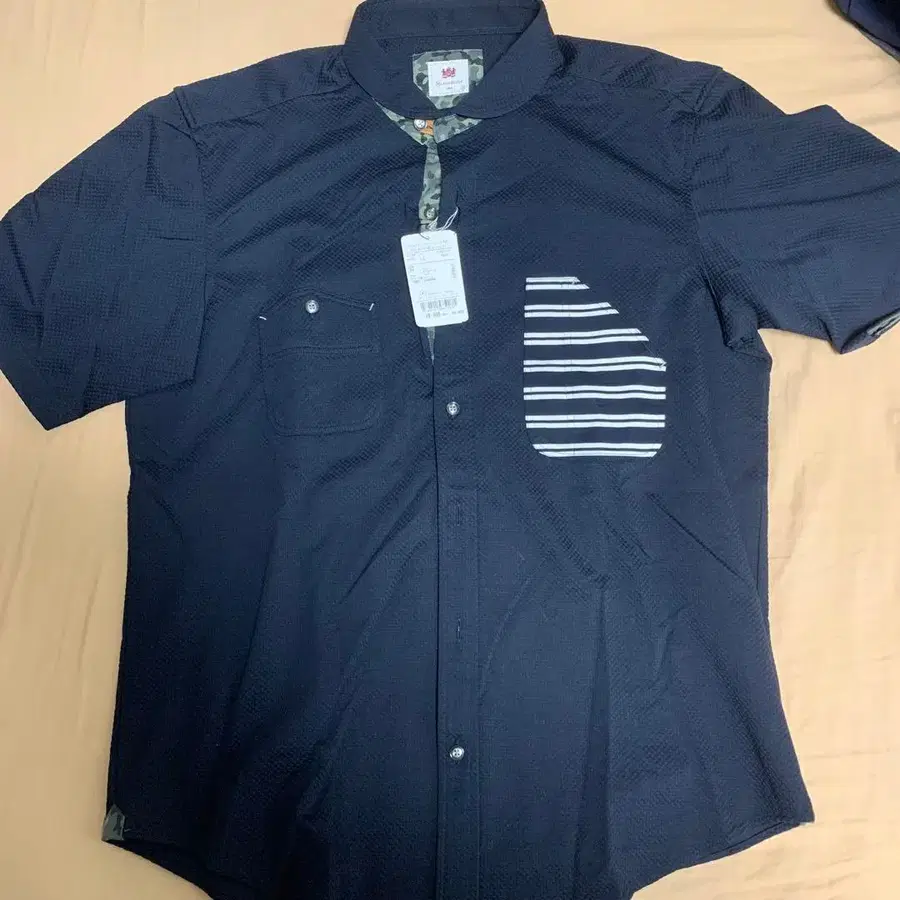 네이비 색상의 반팔 셔츠입니다. 폴리에스테르와 면 혼방 소재로 쾌적한 착용감을 선사합니다. - 브랜드: Mitsumine - 색상: 네이비 - 사이즈: LL - 소재: 폴리에스테르 52%, 면 48% 방문해 주셔서 감사합니다.