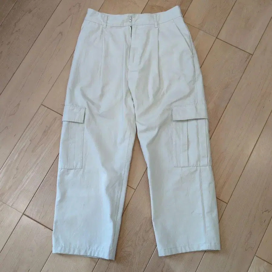 새하얀 색이 아니라 아이보리 계열의 화이트 팬츠입니다. 원단은 탄탄하며 두께감이 있습니다.