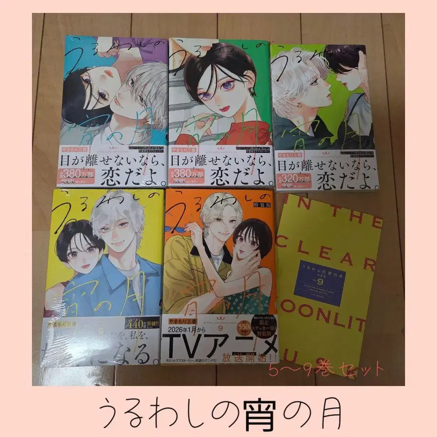 선반 정리를 위해 판매합니다. ◾︎ 상품명: 우루와시노 요이노 츠키 ◾︎ 권수: 5~9권 (특장판) ◾︎ 구매 상황: 서점에서 구매한 상품입니다. ◾︎ 상품 상태: 5~8권은 미개봉품입니다. 9권만 한 번 읽었습니다. 9권만 특장판입니다. 혜택 상품은 미개봉품입니다. 눈에 띄는 변색 등은 없습니다. ※ 1~4권은 판매하지 않습니다. 5권부터입니다. ※ 낱개 판매는 불가합니다. ※ 자택 보관 중이므로 이해해 주시는 분의 구매를 부탁드립니다. ※ 기분 좋은 거래가 될 수 있도록, 잘 부탁드립니다.