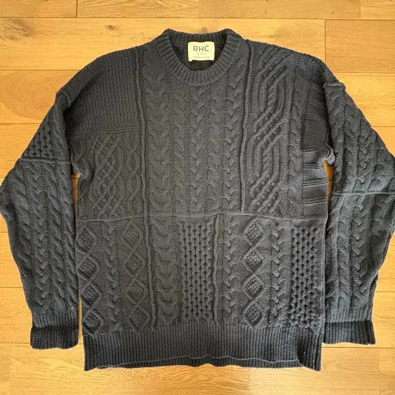 로베르토 콜리나의 네이비 케이블 니트 스웨터, RHC 제조입니다. 판매 당시 즉시 완판된 제품입니다. 짜임 방법이 특징적이며, 스태프분들도 착용하셨습니다!