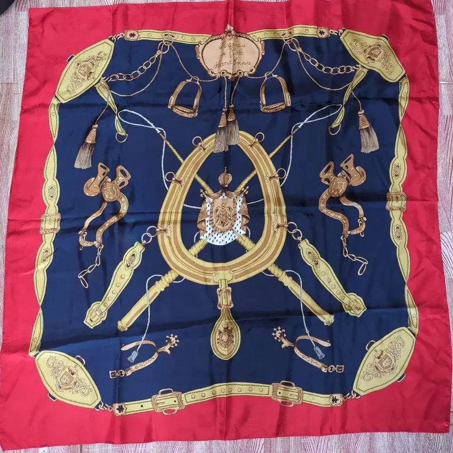 실크 100% 스카프 대형 네이비 x 레드
