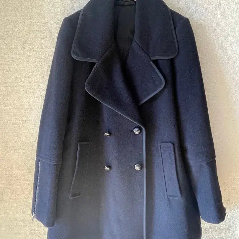 울 네이비 더블 버튼 피코트
