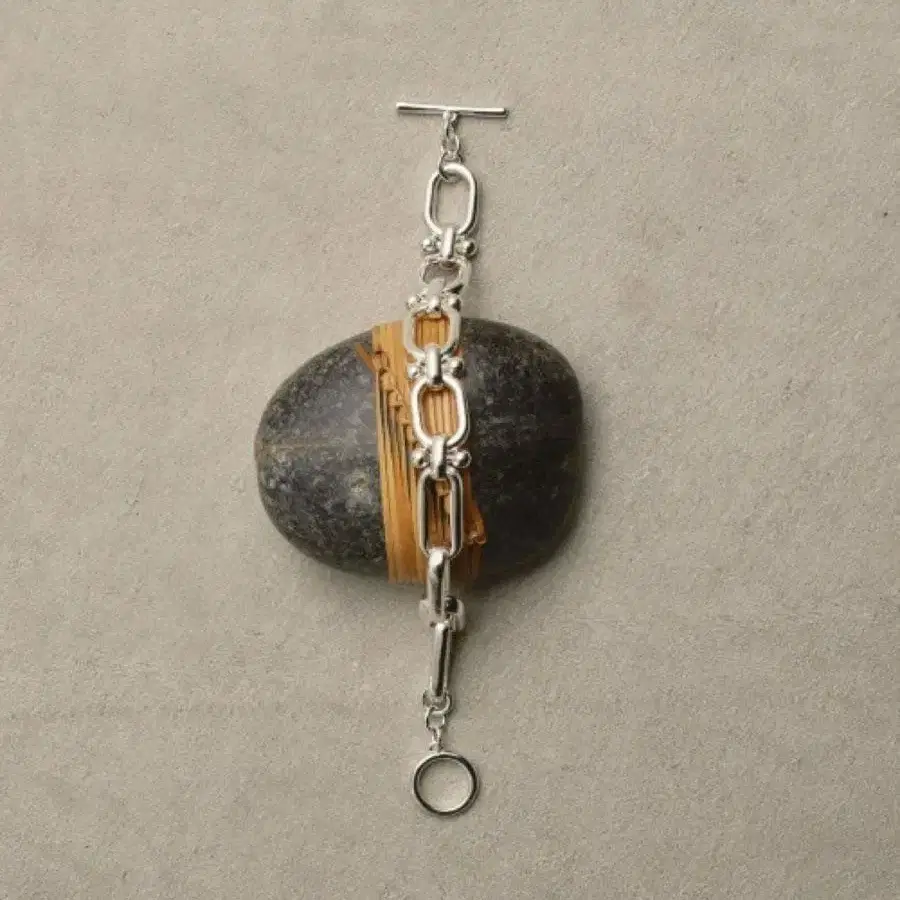 2종류의 체인을 사용한 중후한 느낌의 팔찌입니다.
