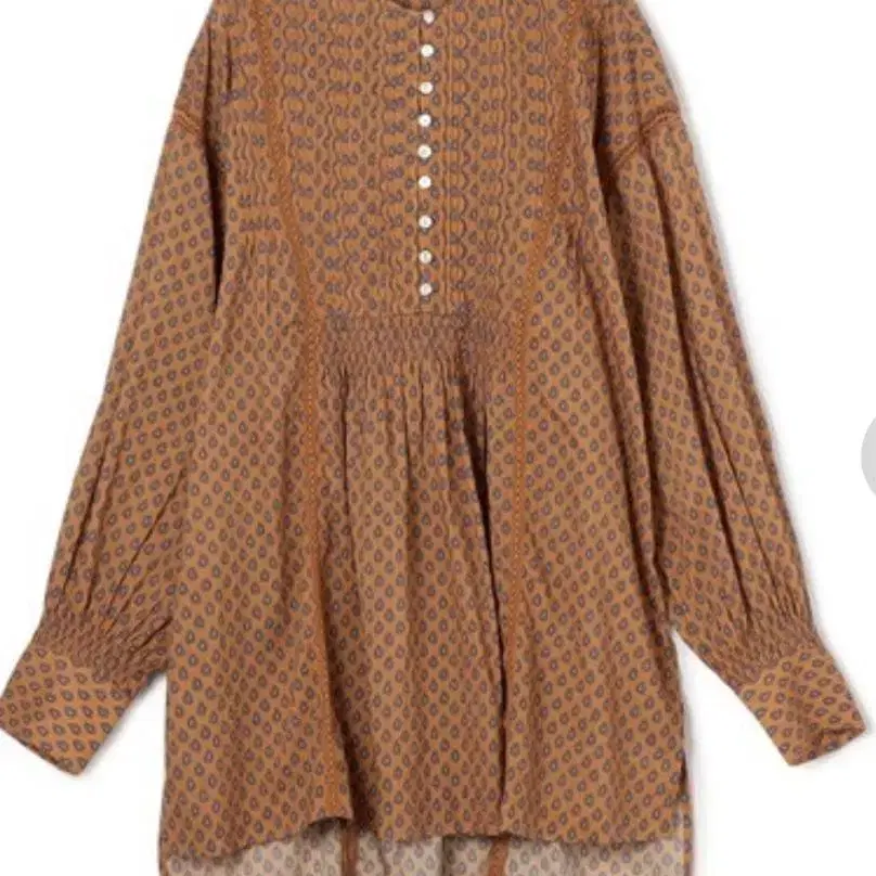 자동 번역되었어요. 원문보기[ 상품명 ] 미사용 2023AW SOULEIADO 코튼 나일론 프린트 핀턱 튜닉 블라우스 36/오렌지 계열