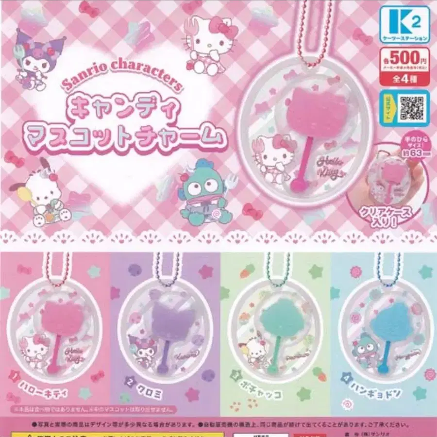 산리오의 귀여운 캔디 마스코트 참, 총 4종류의 컬러풀한 디자인. - 캐릭터: 헬로키티, 쿠로미, 포차코, 한교동 - 종류: 캔디 마스코트 참 - 수량: 총 4종류 - 가격: 500엔 캡슐은 포함되지 않습니다! 설명서는 개수만큼 동봉해 드립니다 ♡