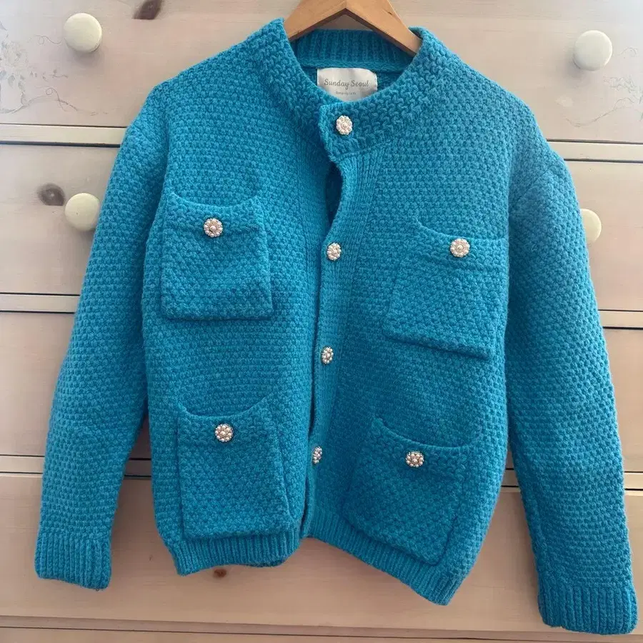 자동 번역되었어요. 원문보기선명한 파란색 니트 가디건, 버튼과 포켓이 있어 캐주얼한 스타일에 최적입니다.