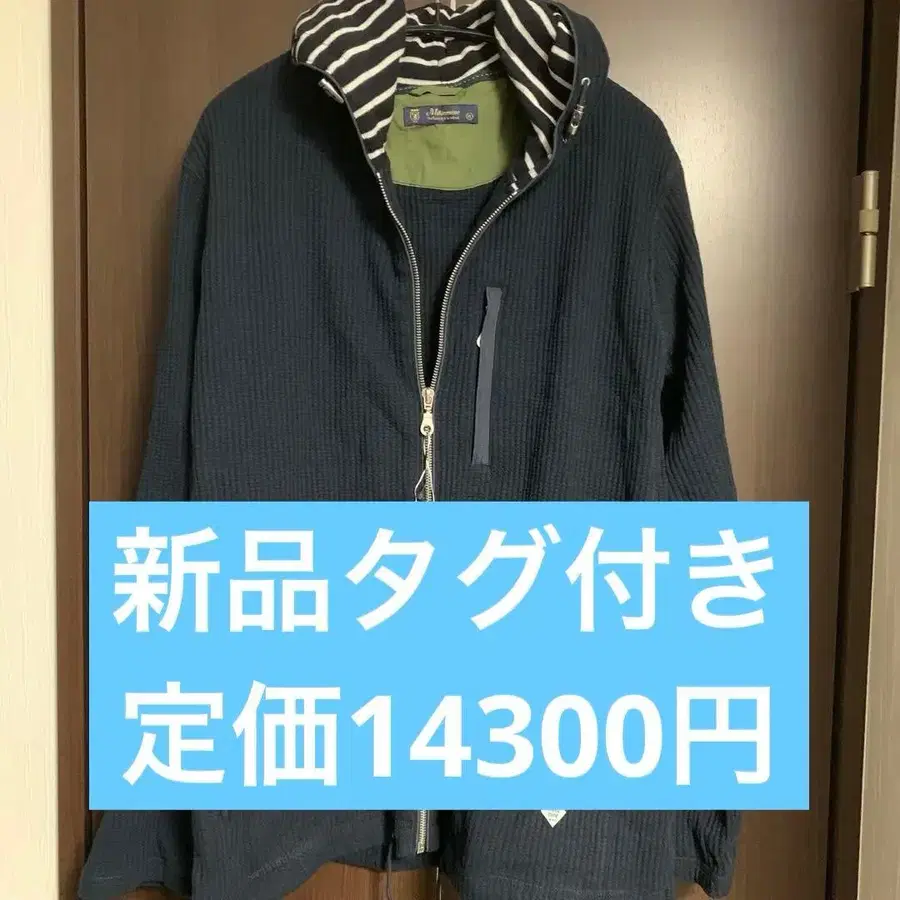 스트라이프 후드 부착 네이비 리브 자켓. - 브랜드: Mitsumine - 색상: 네이비 - 디자인: 스트라이프 후드 - 소재: 리브 - 포켓: 지퍼 포켓 있음 방문해 주셔서 감사합니다.