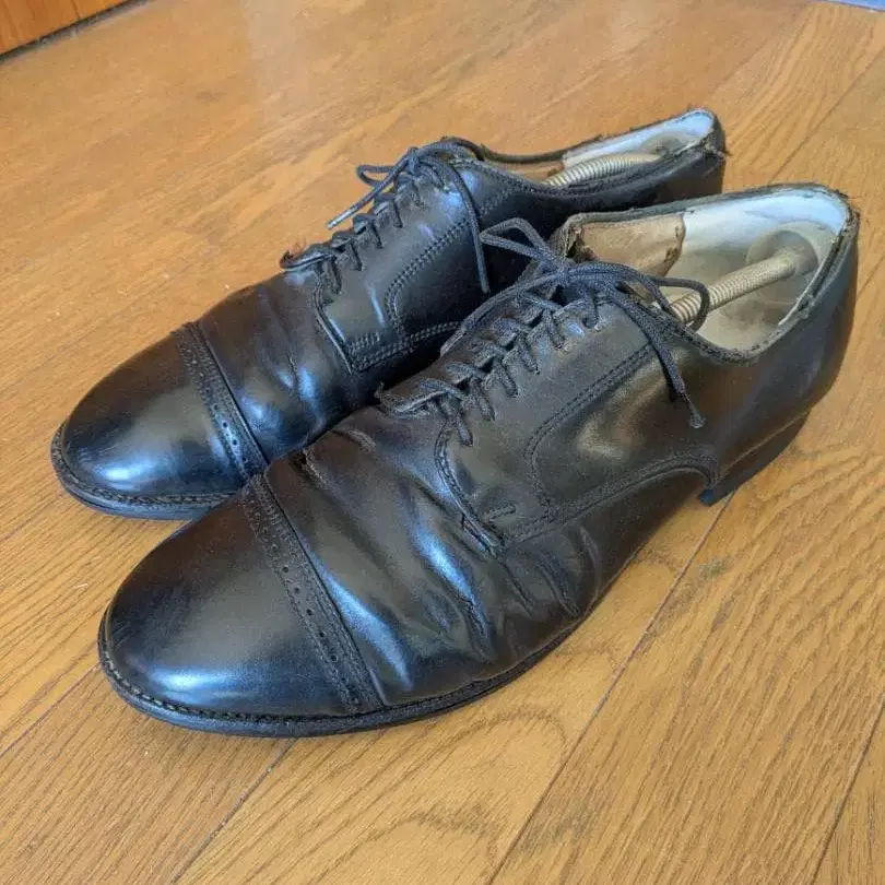 스트레이트 팁 디자인 블랙 가죽 신발 사이즈 9 사용감 있음. 알든 ALDEN 코도반 구매 시기 2005년경 - 색상: 블랙 - 디자인: 스트레이트 팁 - 상태: 사용감 있음 전체적으로 데미지 있음 특히 왼발 갑피에 2곳 깊은 갈라짐 올 밑창 교환 있음 발꿈치 교환 있음 - 소재: 가죽 - 특징: 후면에 보강재 있음 방문해 주셔서 감사합니다. 색상 - 블랙 계열 얼룩, 찢김 - 있음 [ 주의 ] 사진과 같이, 전체적으로 상당히 데미지가 있으므로, 잘 확인하시고 내용 이해하신 후 구매해 주십시오. 반품 불가입니다. 저는 스니커즈는 10 하프 ( 28.5 cm ) 신고 있지만, 스니커즈 사이즈로 말하면 적정 28~28.5 정도라고 생각합니다 ( 제 개인적인 참고 정도로만 )