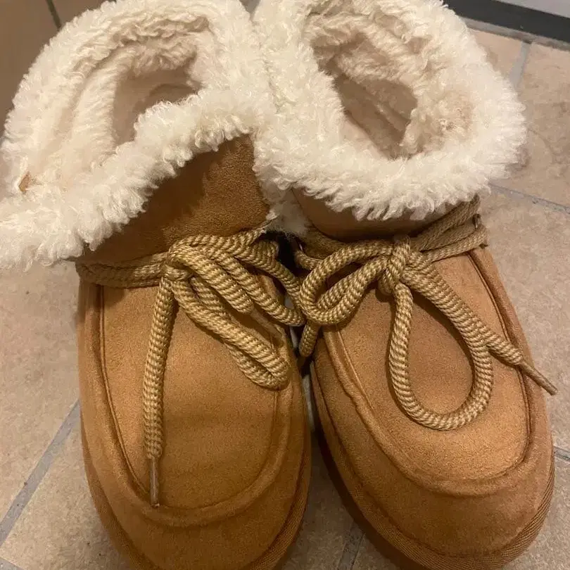 작년에 니코앤드에서 구매했습니다. 한 번 짧은 시간만 착용했습니다. 베이지 색상의 스웨이드 소재이며, 퍼 안감의 어그 부츠입니다. - 색상: 베이지 - 소재: 스웨이드 - 내부: 퍼 소재 - 디자인: 로프 끈 포함 - 스타일: 어그 부츠 방문해 주셔서 감사합니다. 사이즈 - M 사이즈