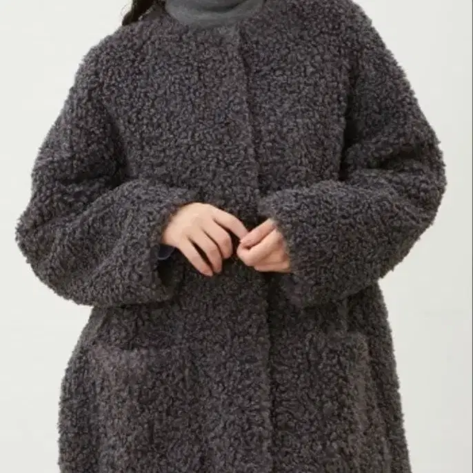 Mila Owen의 고급스러운 표면감이 돋보이는 노카라 보아 코트입니다.