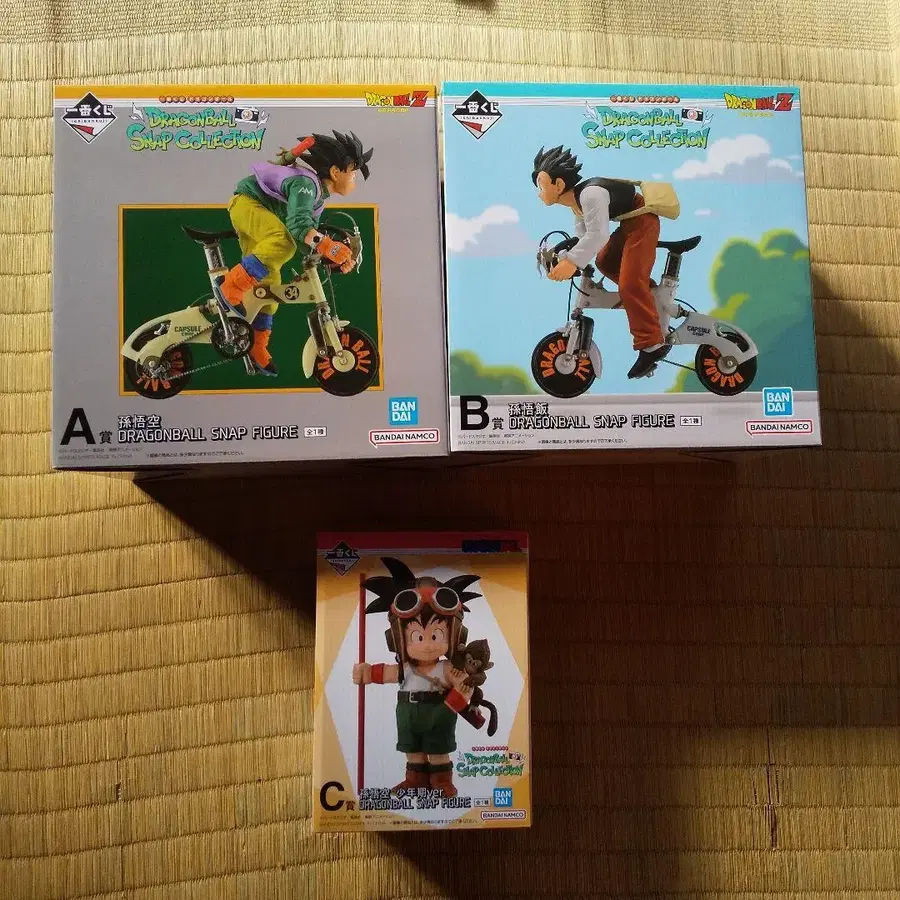 방문해 주셔서 감사합니다. 제일복권 드래곤볼 스냅 피규어 SNAP COLLECTION A & B & C상 세트 A상 손오공 자전거 B상 손오반 자전거 C상 손오공 소년기 미개봉 새상품입니다. 즉시 구매 환영합니다. 습기 방지, 파손 방지하여, 라쿠라쿠 메루카리(らくらくメルカリ)로 보내드립니다. 그 외에도 다수 판매 중이니, 함께 구매 가능하니 연락 주세요.
