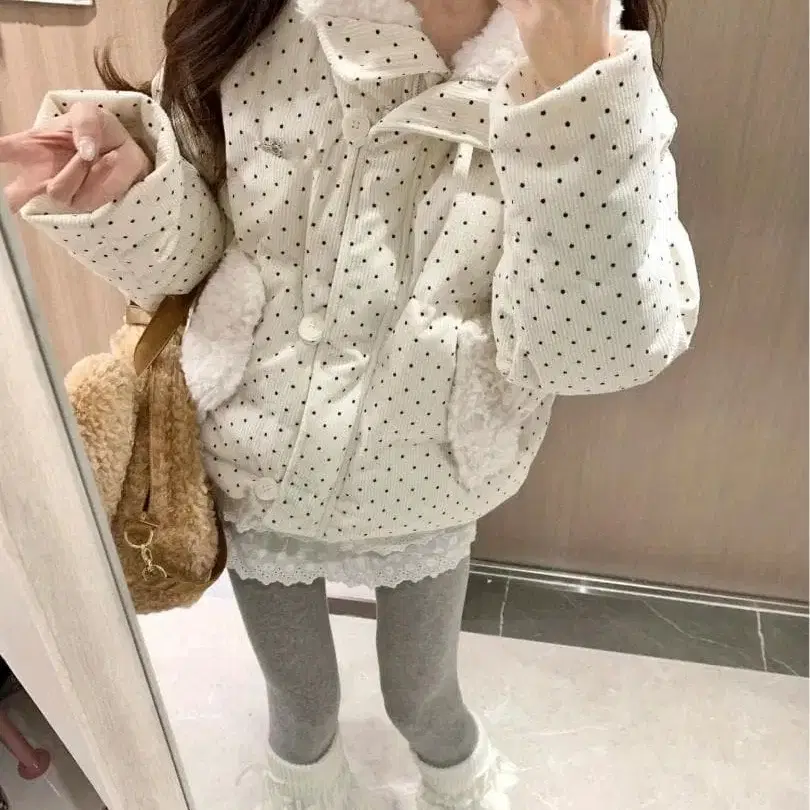 도트 무늬의 플리스풍 무스탕 코트, 후드 부착으로 캐주얼한 스타일에 최적. - 색상: 화이트 - 디자인: 도트 무늬 - 소재: 플리스풍 - 스타일: 캐주얼 - 특징: 후드 부착 - 포켓: 사이드 포켓 있음 방문해 주셔서 감사합니다. 색상 - 화이트 계열 기장 - 숏/미들 기장 얼룩, 찢김, 냄새 등 - 없음
