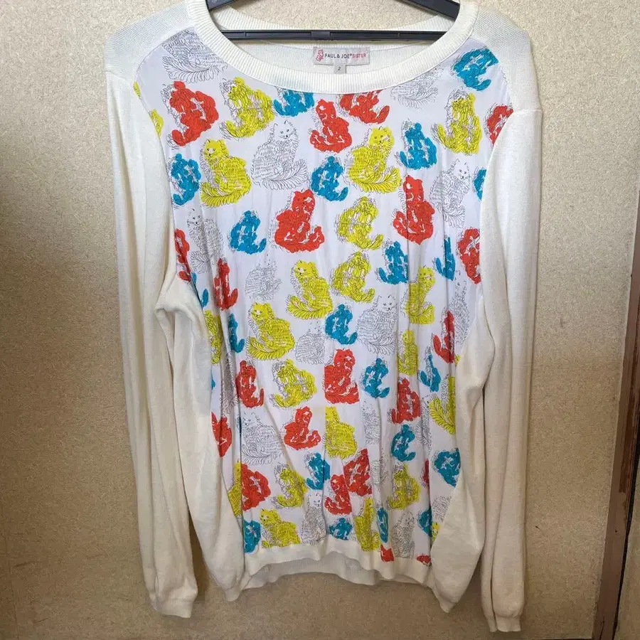 컬러풀한 고양이 프린트가 특징인 긴팔 상의. - 브랜드: PAUL & JOE SISTER - 사이즈: 2 - 디자인: 컬러풀한 고양이 프린트 - 색상: 화이트/컬러풀 - 스타일: 긴팔 기장 약 61cm 가슴 너비 약 49cm 방문해 주셔서 감사합니다. 사이즈 - M