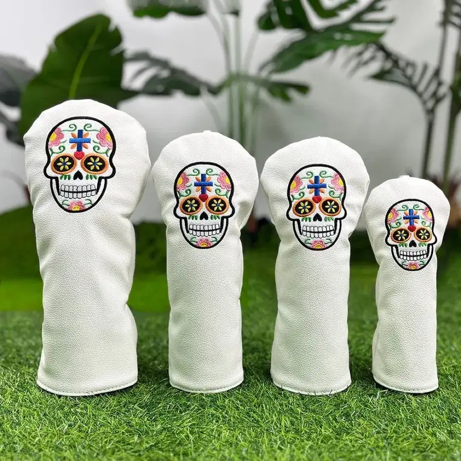 유니크한 스컬 디자인의 골프 헤드커버 4개 세트. - 디자인: 스컬 디자인 자수 - 색상: 화이트 - 소재: 합성 피혁 - 사이즈: 4개 세트 (다른 사이즈) - 특징: 유니크한 디자인으로 시선을 사로잡습니다. 방문해 주셔서 감사합니다.