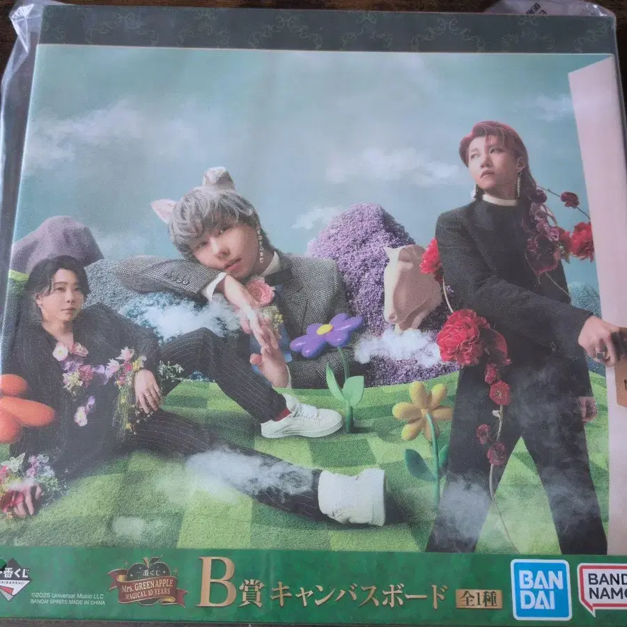 Mrs. GREEN APPLE의 아트 워크를 사용한 B상 캔버스 보드. 제일복권 상품입니다. - 상품명: B상 캔버스 보드 - 브랜드: 반다이 - 디자인: 뮤지션 아트 워크 방문해 주셔서 감사합니다.