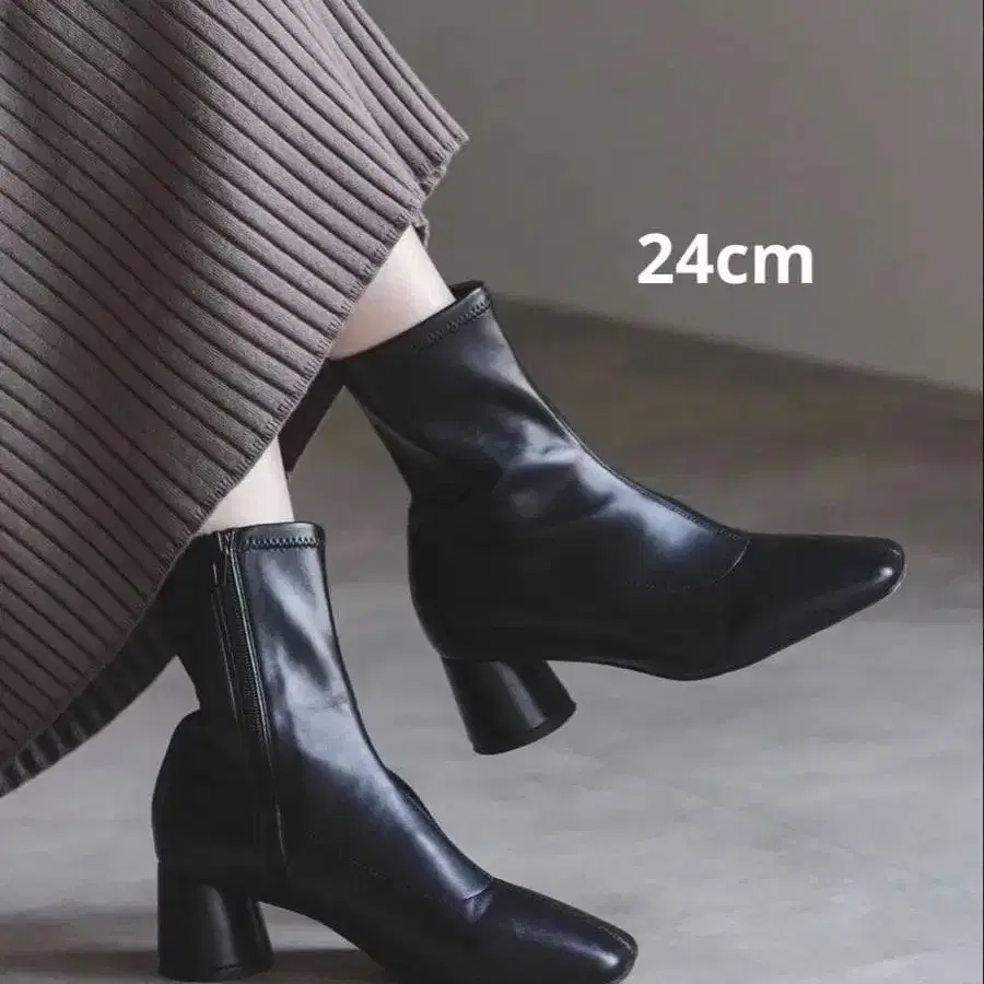 스트레치 가죽을 사용한 슬림한 바디에, 통 모양의 청키힐이 안정감과 디자인성을 더해주는 올가을/겨울 강추 부츠입니다.