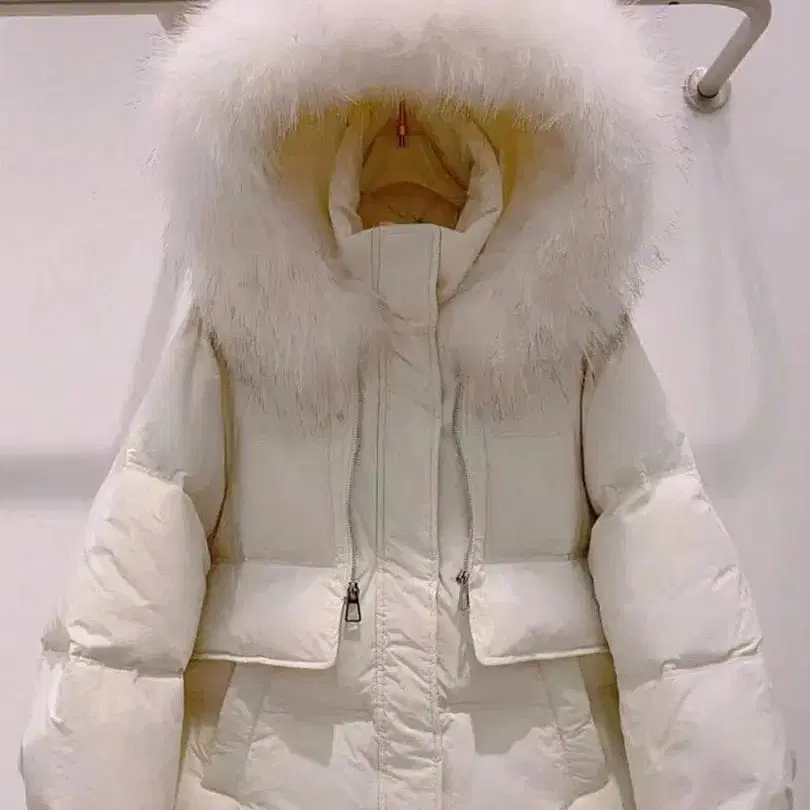 화이트 다운 자켓 후드 부착