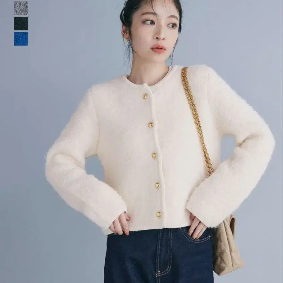 울 니트 가디건 자켓 블루종 에폴렛 버튼 카라 부착