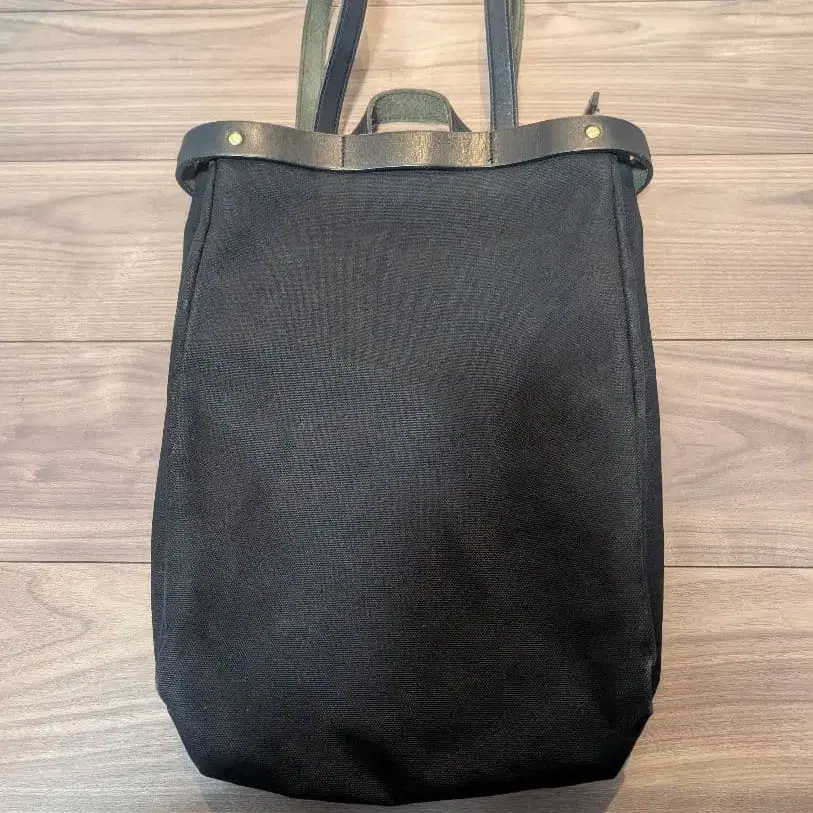 자동 번역되었어요. 원문보기심플한 디자인의 블랙 백팩, 캔버스와 가죽의 콤비네이션으로 내구성 있음.