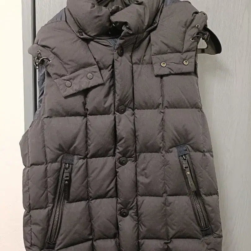 착용 횟수는 5회 정도입니다. 상태는 상당히 깨끗하다고 생각합니다. 후드 부착 그레이 퀼팅 다운 베스트, 지퍼 포켓 부착으로 기능적입니다. - 색상: 네이비 - 특징: 후드 부착 - 포켓: 지퍼 포켓 2개 방문해 주셔서 감사합니다.