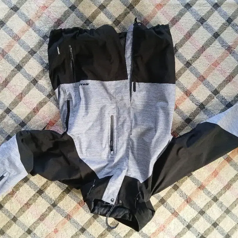 GORE-TEX 소재를 사용한 ARMADA의 L 사이즈 나일론 자켓, 그레이와 블랙의 스타일리시한 디자인.
