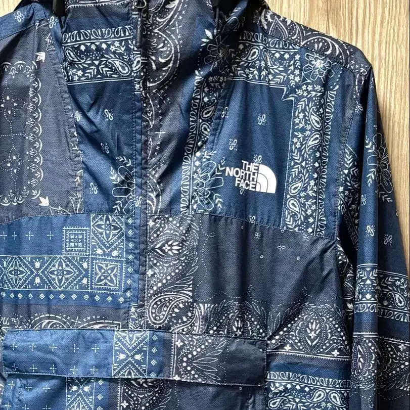 상품을 봐주셔서 감사합니다 ♪ 네이비 계열의 반다나 패턴 후드 부착, 포켓 부착 나일론 소재 잘 부탁드립니다(^^) 사이즈 - M